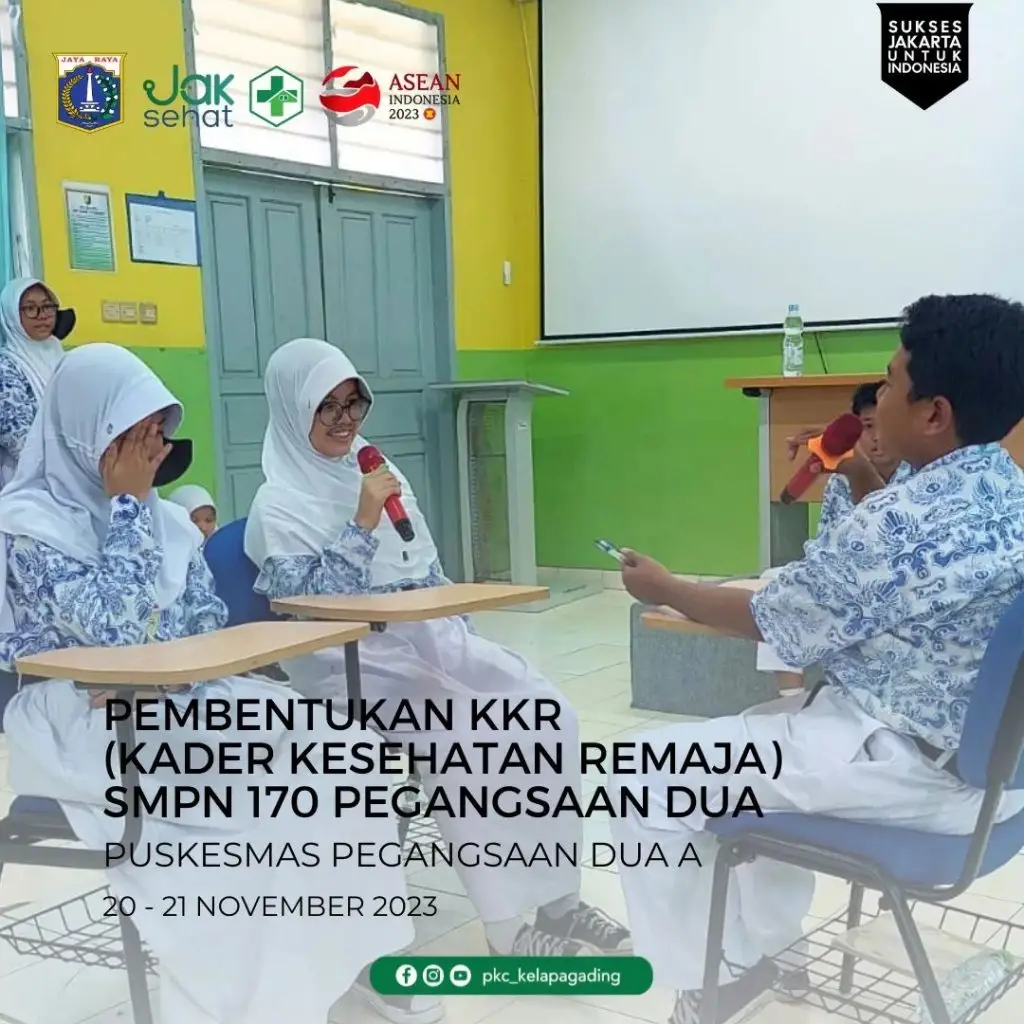 Pembentukan KKR (Kader Kesehatan Remaja) di SMPN 170 di laksanakan di Aula Sekolah selama 2 hari pada 20-21 November 2023 oleh PKC Kelapa Gading, Puskesmas Pegangsaan 2.