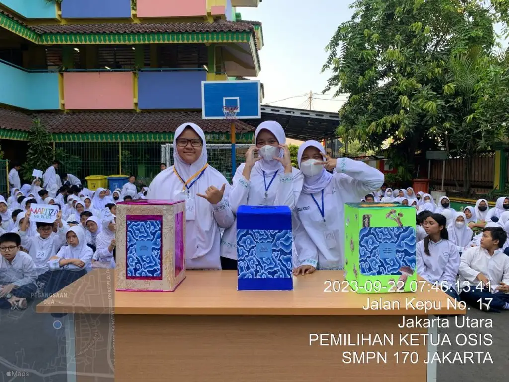 Pada tanggal 22 September 2023 telah dilaksanakan Pemilihan Ketua dan Wakil Ketua OSIS SMP Negeri 170 Jakarta Masa Bakti 2023/2024. Pemilihan ini dilakukan dalam rangka memberikan pendidikan demokrasi melalui pengalaman praktis, maka untuk pemilihan Ketua dan Wakil Ketua OSIS dilakukan dengan sistem pemungutan suara oleh guru, Tata Usaha dan seluruh peserta didik kelas 7, 8 dan 9.